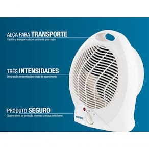 Funções: Aquecimento (baixa e alta intensidade) + ventilação (ar ambiente)