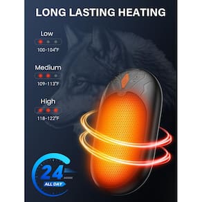 - 3 níveis de calor e calor de longa duração: aquecedores de mãos recarregáveis com 3 níveis de calor de 100 ? a 122 ?. Esses aquecedores elétricos de mãos são equipados com uma bateria recarregável de 4000mAh x 2 (8000mAh) que suporta 24 horas* 2 de aquecimento na configuração mais baixa. Os aquecedores de mãos reutilizáveis AJVV mantêm você aquecido o dia todo!