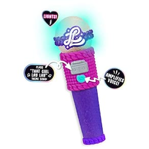 Agite o microfone e solte uma batida com o microfone musical That Girl Lay Lay. O microfone de Lay Lay encoraja o mestre de cerimônias em todos os pequenos fãs de hip hop. Pressione o botão da caixa de som para se apresentar junto com a música-tema do show de sucesso da Nickelodeon, That Girl Lay Lay. Use o botão Amplificador de Voz para ativar o microfone e cantar junto com as luzes e os sons. Crie um show de luzes enquanto a tela do microfone se ilumina em padrões de arco-íris. Este brinquedo infantil interativo permite que pequenos fãs de hip hop e divas de todos os gêneros musicais se apresentem em grande estilo em casa, com amigos e para membros da família. Para viver a vida de uma megaestrela do hip hop, adicione mais eletrônicos infantis, figuras de brinquedo, bonecas e acessórios da coleção That Girl Lay Lay. Os brinquedos Lay Lay são excelentes recheios de meias, presentes de Natal e lembrancinhas de festa para crianças de 3 anos ou mais. Requer 2 pilhas AAA (incluídas).