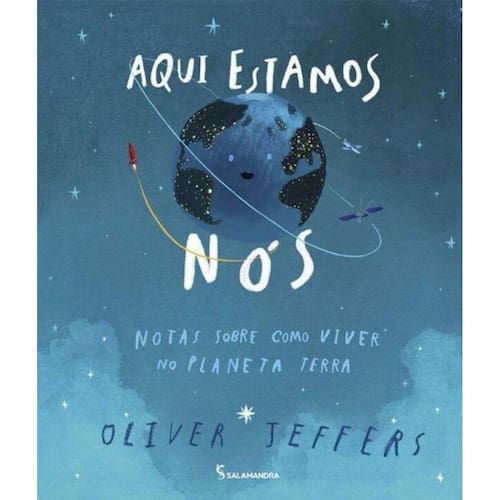 Em Aqui estamos nós, Oliver Jeffers nos convida a refletir sobre o imenso planeta que nos acolhe e, principalmente, sobre a vida que levamos nele. Assumindo a voz de um pai que está conversando com seu filho recém-nascido, situação real que inspirou a escrita do livro, o autor gentilmente nos apresenta o planeta sob diversos pontos de vista. Assim, com pequenos conselhos que valorizam a vida, o carinhoso pai repassa ao filho singelas e divertidas lições de sobrevivência na Terra. E, entre tantas importantes reflexões, uma delas com certeza ficará mais forte na mente do jovem leitor: não estamos sozinhos aqui. Como uma gota no oceano, somos apenas um entre os bilhões de seres vivos que vivem sobre a Terra. Assim, fica fácil compreender por que partilhar, tolerar e respeitar são verbos fundamentais para o nosso manual de sobrevivência! Ean: 9788516111663