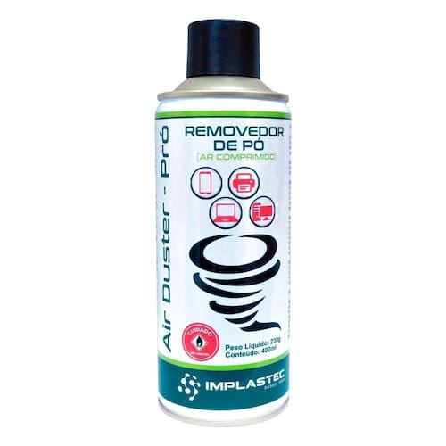 Forte jato de ar comprimido, indicado para remoção de poeira e pequenas sujeiras dos mais variados lugares, inclusive aqueles de difícil acesso. Produto inflamável, deve ser utilizado com o equipamento desenergizado.