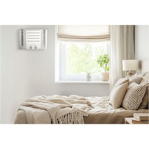 A moldura integrada elimina a necessidade de acabamentos adicionais ao redor do ar-condicionado.