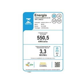 • Classificação A do INMETRO Maior eficiência em refrigeração, com o melhor nível de desempenho energético da categoria. A classificação A garante menor consumo de energia, ajudando você a economizar na conta de luz sem abrir mão do conforto.