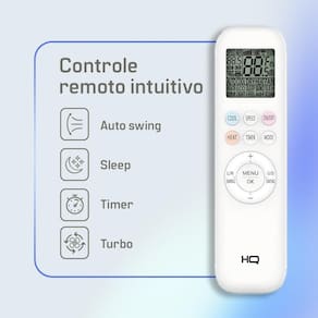 - Funções inteligentes: Sleep, Timer, Turbo e Auto Swing no controle remoto