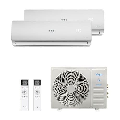 O ar condicionado Multi Split Elgin 18.000 BTUs combina duas unidades internas (cada uma de 9.000 BTUs) conectadas a uma única unidade externa de 18.000 BTUs, ideal para climatizar dois ambientes com um só sistema.