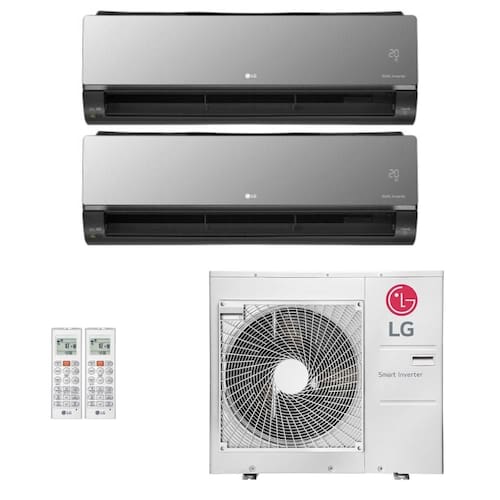 O Ar-Condicionado Multi Split LG 36.000 BTUs é a solução ideal para climatizar dois ambientes com estilo, eficiência e economia. Este conjunto inclui duas evaporadoras da linha Artcool, reconhecida pelo design espelhado moderno e alta performance, além de uma condensadora potente com tecnologia Inverter e gás refrigerante R-410A.