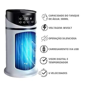 Conforto e Frescor em Qualquer Lugar Com o Ventilador Mini Ar Condicionado Refrigerado Portátil USB com LED, você pode desfrutar de um ambiente mais fresco e confortável onde quer que esteja. Compacto, eficiente e com múltiplas funcionalidades, ele é a escolha ideal para quem busca conforto em qualquer lugar.