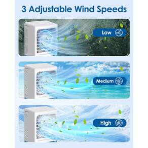 -?3 velocidades de vento?Personalize seu conforto com as três velocidades de vento deste refrigerador de ar portátil. A saída de ar ajustável permite que você direcione a brisa da maneira certa. Com controles fáceis no painel superior, é fácil para todos usarem