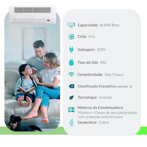 Ar Condicionado Split Cassete 1 Via - Inverter R-32 - G-linea - Gree - 18.000 BTUs - Frio - 220V Monofásico G-LINEA Cassete 1 Via Inverter: climatização moderna, econômica e sustentável com fluido R32 Pensado para quem busca climatizar ambientes com elegância e eficiência, o ar-condicionado Cassete 1 Via Inverter G-LINEA combina alta performance, funcionamento silencioso e um design discreto, perfeito para projetos arquitetônicos sofisticados. Seja para uso residencial ou corporativo, ele entrega conforto térmico de forma inteligente e econômica. Economia real com a tecnologia Inverter A tecnologia Inverter presente neste modelo permite que o compressor trabalhe de forma contínua e ajustável, evitando picos de energia e garantindo redução significativa no consumo elétrico. Além disso, promove maior estabilidade de temperatura e prolonga a vida útil do sistema. Eficiência ecológica com o fluido R32 Com foco em sustentabilidade, o G-LINEA utiliza o fluido refrigerante R32, que proporciona vantagens importantes: Maior eficiência térmica e menor carga de gás; Equipamentos mais leves e compactos, facilitando o transporte e a instalação; Zero impacto na camada de ozônio (ODP = 0); Baixo potencial de aquecimento global (GWP = 675), 68% inferior ao do R410A; Permite recarga em fase líquida ou gasosa, tornando a manutenção mais prática. Esse conjunto de características torna o R32 uma escolha moderna, segura e ambientalmente responsável. Mais conforto com design funcional O G-LINEA vai além da climatização eficiente. Ele entrega uma experiência completa: Display digital em LED, de fácil visualização; Sistema de ventilação 3D, que distribui o ar de forma ampla e uniforme; Funcionamento ultrassilencioso, ideal para ambientes que exigem concentração ou tranquilidade; Revestimento anticorrosivo GoldFin, que protege os trocadores contra maresia e umidade; Múltiplos sistemas de proteção, assegurando mais durabilidade e segurança ao equipamento. A escolha certa para quem exige desempenho e cuidado com o planeta O Cassete 1 Via G-LINEA Inverter é a união perfeita entre tecnologia, conforto e compromisso ambiental. Um ar-condicionado moderno, compacto e eficiente, pronto para elevar o padrão de qualidade do seu ambiente com um toque de sofisticação e consciência ecológica.