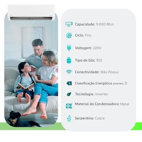 Ar Condicionado Split Hi Wall - Inverter R-32 - Airvolution Lite - Midea - 9.000 BTUs - Frio - 220V Monofásico Ar-Condicionado Split Midea AirVolution Lite: Conforto e Durabilidade para seu Lar O Ar-Condicionado Split AirVolution Lite Midea é a escolha ideal para quem busca o equilíbrio perfeito entre desempenho essencial e praticidade tecnológica. Com um design minimalista em acabamento branco fosco e LED invisível, ele se integra com sofisticação a qualquer estilo de decoração, oferecendo climatização eficiente sem complicações. Tecnologia de Ponta e Durabilidade Avançada (Sistema Prime Guard) Desenvolvido para enfrentar as condições mais adversas, o AirVolution Lite conta com o exclusivo sistema Prime Guard. Este conjunto de tecnologias garante uma vida útil prolongada ao aparelho através de: Tecnologia Gold Fin®: Proteção extra na unidade externa contra oxidação e corrosão, essencial para garantir resistência inclusive em regiões litorâneas. Placa Eletrônica Blindada: Resistente à umidade e corrosão, aumentando significativamente a durabilidade dos componentes internos. Cura UV: A placa completa é coberta por uma resina com cura em luz UV para proteção avançada contra contaminantes. Operação em Ampla Faixa de Tensão: Funciona de forma estável entre 151V e 264V, ajustando a frequência do compressor para resistir a variações de voltagem. Conforto Térmico e Funções Inteligentes Para proporcionar o clima perfeito, o Midea AirVolution Lite oferece funções que priorizam o seu bem-estar: Função Turbo: Alcance a temperatura desejada muito mais rápido com o resfriamento acelerado. Brisa Indireta: Ajusta o fluxo de ar para evitar jatos diretos, proporcionando um conforto térmico suave. Função Siga-me: O sensor do controle remoto (com alcance de até 8 metros) informa ao aparelho onde você está, direcionando o fluxo de ar para o seu entorno. Função LED: Perfeita para noites de sono tranquilas, desativa os sinais sonoros e apaga o display da unidade interna. Autolimpeza: Possui 4 etapas de limpeza interna para garantir que o aparelho permaneça livre de sujeiras e impurezas. Versatilidade e Instalação Simplificada Com uma unidade externa compacta que ocupa até 35% menos espaço em comparação aos modelos convencionais, este ar-condicionado é ideal para apartamentos e áreas com limitações de tamanho. Além disso, a flexibilidade é garantida pela possibilidade de instalação a apenas 5 cm de distância do teto.