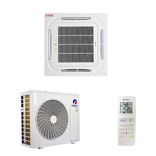 Ar condicionado Split Inverter Cassete Gree G-Prime Compact 24.000 Btus R32 Frio 220vPrincipais Características- Principais Características- Design elegante e moderna- Saída de ar com giro de 360- Saída de ar horizontal suave. Sem o desconforto de jato de ar direto.- Silencioso e sem ruído com 8 saídas de ar- Aletas com revestimento anticorrosão especial Goldenfin: 2 camadas de proteção hidrofílica 2 camadas anticorrosivas Aleta de alumínio + manganês.- As placas eletrônicas são revestidas com tripla camada de resina protetora anticorrosão, ocasionadas pela maresia e umidade.- Resfriamento 20% mais rápido.- Hélice com novo design aerodinâmico: aumenta 13,5% a captação de ar, melhorando a troca de calor.- Sistema de drenagem por bomba CC que evita gotejamentos- Sai Pressurizado de fábrica- Com carga de Gás R32 para até 9,5m de linha- Compressor Double Inverter- Fácil instalação por porca flange em todas as capacidades- Multiproteções anticorrosão no conjunto todo- 5 anos de garantia no produto- 10 anos de garantia no compressor