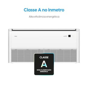 O sistema inclui filtragem padrão e permite o movimento das aletas para melhor direcionamento do ar, preservando a qualidade da distribuição térmica no ambiente.