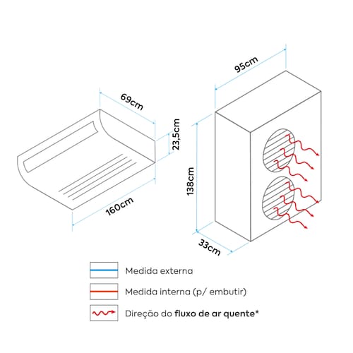 • Verifique se o tamanho/medida do aparelho (interno e o externo) são compatíveis com o local da instalação.