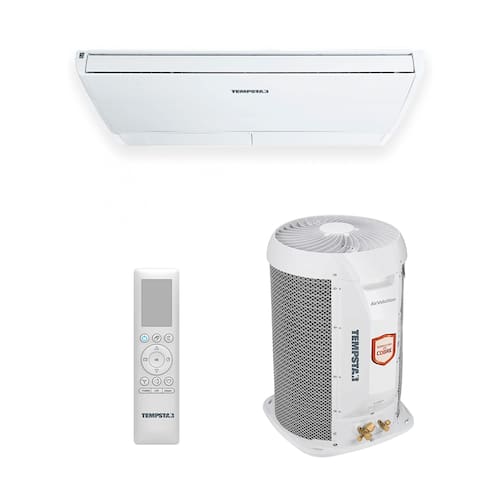 A linha Split Teto Tempstar é ideal para estabelecimentos comerciais, trazendo maior conforto térmico, operação silenciosa e robustez aliado a um design moderno e agradável. Possui condensadora leve, compacta e robusta, com descarga vertical, que ocupa menos espaço e facilita a instalação e manutenção, e possui serpentina em cobre que garante maior vida útil, confiabilidade e robustez. Evaporadora fácil de limpar, com filtro de tela lavável de simples acesso
