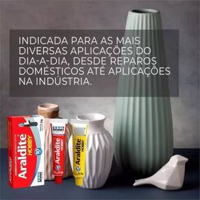 No uso intenso e doméstico. Araldite® Hobby é indicado para reparos e colagens de pequenas superfícies de materiais lisos, porosos ou irregulares como azulejos, madeira, vidro, concreto, fibras naturais, pedras, a maioria dos plásticos rígidos (exceto polipropileno, polietileno e Nylon®), metais e outros materiais. Resiste a temperaturas de até 70°C, secagem inicial em 10 minutos e secagem total em 8 horas.