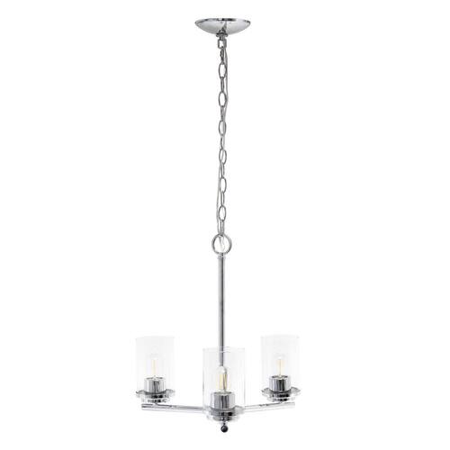 Elegant Designs PT1018-CHR araña colgante tradicional vintage moderna industrial de 38 cm con 3 luces, metal y vidrio transparente para cocina, recibidor, pasillo, sala, estudio y comedor, acabado cromado. - DISEÑO TRADICIONAL/MODERNO: La estructura de esta araña está cuidadosamente terminada en metal cromado y adornada con pantallas de vidrio transparente simples para un aspecto tradicional y moderno. - ALTURA AJUSTABLE: Cuenta con una cadena metálica con ganchos que permiten ajustar la altura fácilmente, ideal para techos altos o espacios donde se necesite una longitud más corta. - MEDIDAS: Este colgante es perfecto para colocar en la entrada, escalera, comedor, dormitorio, oficina o sala. Medidas sin contar la base y cadena: diámetro 38 cm x altura 43 cm. - REQUIERE MONTAJE E INSTALACIÓN ELÉCTRICA: Se debe instalar y cablear a la toma eléctrica del techo. Se incluye manual de instrucciones y fijaciones. - BOMBILLAS VENDIDAS POR SEPARADO: Utiliza 3 bombillas tipo A19 con base media E26 de 40 vatios equivalente, no incluidas. Se recomienda bombilla Edison tipo T45 para un look vintage completo. - OPCIONES ADICIONALES: Disponible en otros acabados con bases a juego. Si este acabado no es el ideal para tu espacio, revisa todos los colores disponibles.