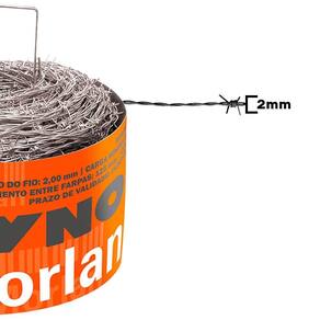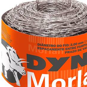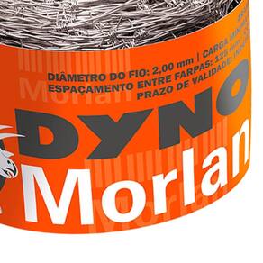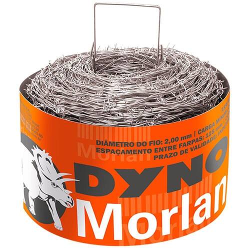 O Arame Farpado Dyno Morlan é fabricado com arame de aço zincado para proteção contra a corrosão e possui classificação de resistência mínima de 250 kgf, apresenta farpas extremamente cortantes e fixas, entrelaçadas na corda do farpado, posicionadas a uma distância de 5 (125 mm) uma da outra
