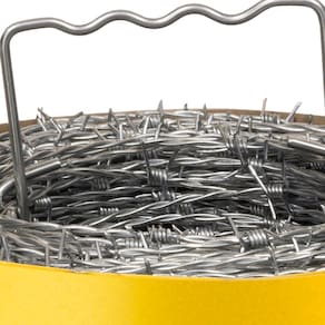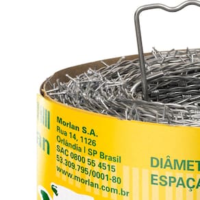 O arame farpado Nelore Morlan é fabricado com aço zincado para proteção contra a corrosão e possui classificação de resistência mínima de 250 kgf.