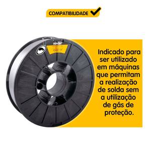 - Compatível com Máquinas MIG Sem Gás: Desenvolvido para utilização em equipamentos que realizam soldagem sem gás de proteção;