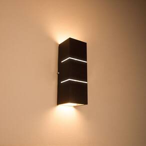 Proporciona economia nos gastos com energia elétrica, além de valorizar o local e criar um clima aconchegante. É muito prática e ideal para diversos tipos de iluminação. Com seu design moderno e diferenciado com efeito na parede conforme na foto, é Utilizado em áreas internas ou externas como: halls, garagens, salas, muros. A qualidade do material utilizado na fabricação, oferece a Arandela uma excelente durabilidade e resistência. DETALHES TÉCNICOS: - Fiação inclusa. - Fácil Instalação e Limpeza - Excelente Iluminação - Instalação:Parede - Material: Alumínio - Voltagem:127v ou 220v Bivolt - Altura: 30cm - Largura: 10cm - Profundidade: 10cm - Soquete: Para 2 lâmpadas E27 - Peso: 400g - Lâmpada Não Inclusa Marca: Não Informado