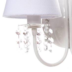 Ter uma iluminação indireta, além da central, deixa o quartinho do bebê mais versátil. Aposte no charme luminotécnico que esta arandela pode propocionar e impressione com este item de decoração encantador. Dados TécnicosArandela para 2 lâmpadas em alumínio com pintura epóxi, decorada com cristais e cúpulas forradas com tecido. Lâmpadas SuportadasEconômicas / Led: Qualquer LâmpadaIncandescente amarela : Até 60w por Soquete MedidasLargura: 30 cmAltura: 25 cm