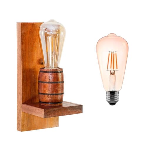 Arandela Barril Delenha Decor Madeira Mogno + Lâmpada