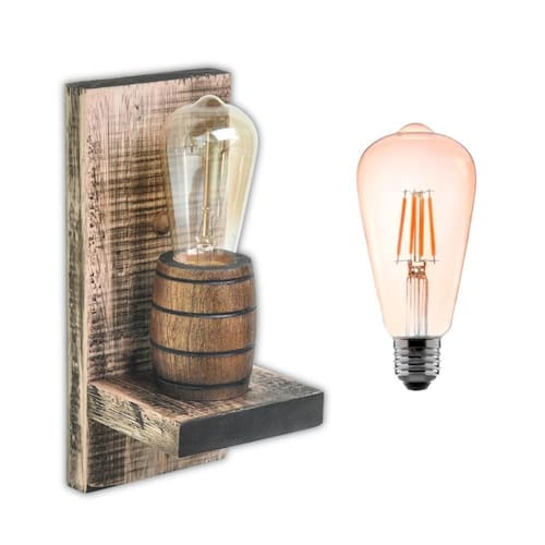 Arandela Barril Delenha Decor Madeira Rústica + Lâmpadas