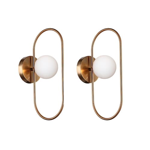 2 Arandela Interna Oval Bronze com Globo de Vidro Branco Sala Ace70 Neste kit contém: - 02 unidades - Arandela interna com arco produzido em metal na cor bronze e cúpula esférica de vidro branco. Esta peça possui design moderno e minimalista, indicada para hall de entrada e escadas. - Material: Estrutura: Metal Globo: Vidro - Cor: Estrutura: Bronze Globo: Branco - Medidas: Estrutura: Comprimento: 12 cm Largura: 22 cm Altura: 40 cm Base ou canopla que fixa na parede Ø : 12 cm Globo Ø 9,50cm - Voltagem: 127/220V - Lâmpada: 1 X G9 - Potência Máxima: 5W Não acompanha lâmpada. Marca: Não Informado