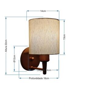 Arandela Cilíndrica Md-2009 Base Cobre Cúpula em Tecido 14x15cm Linho Bege - Bivolt