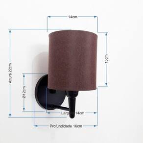 Arandela Cilindrica Md-2009 Base Preto Cúpula Em Tecido 14x15cm Café - Bivolt Arandela de parede Cilindrica Md-2009 Base Preta Cúpula em Tecido 14x15cm CaféAs arandelas Lustres Vivare são elementos versáteis e elegantes que podem transformar qualquer ambiente em um espaço cheio de estilo. Seja para adicionar uma iluminação suave, destacar uma parede ou criar um efeito de luz diferenciado.Dimensão:Cúpula em Tecido: 14x15cm Arandela de parede Montada: Altura 22cm Largura 14cm Profundidade 16cm Formato: Cilíndrico Tamanho: Pequeno Especificação:Material: Cúpula em Tecido Estrutura em Alumínio Base Parede: Diâmetro 11x1,2cm Resistente: Á Maresia Voltagem: 110V/220V Liga e Desliga: Não Tipo de Soquete: E27 Lâmpada Utilizada: Led Bulbo Até 16w ou Fluorescente Espiral Até 25w Cada Capacidade de Lâmpadas: 1 Observação:Acompanha Lâmpada: Não Possui Led Integrado: Não Garantia: 12 Meses Manual de Instalação: Sim Arandela de parede Montada: Sim Controle de Luminosidade: Não Tipo de Embalagem: Caixa Conservação e Manutenção do Produto:A Limpeza deve ser realizada com o produto desligado. Remova o lustre que pode ser lavado com sabão neutro. Nunca utilize produtos químicos e abrasivos Dica:Antes de comprar o seu produto verifique as medidas, o local onde pretende instalar e se necessário o serviço de um profissional qualificado.
