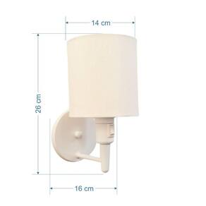 Arandela Cilíndrica Md-2030 Branca Com Liga E Desliga Cúpula Algodão Crú - Bivolt Arandela de parede Cilíndrica Md-2030 Branca Com Liga e Desliga Cúpula Algodão Crú - BivoltAs arandelas Lustres Vivare são elementos versáteis e elegantes que podem transformar qualquer ambiente em um espaço cheio de estilo. Seja para adicionar uma iluminação suave, destacar uma parede ou criar um efeito de luz diferenciado.Dimensão:Cúpula em Tecido: 14x15cm Formato: Cilíndrica Tamanho: Pequeno Especificação:Material: Cúpula em Tecido, Estrutura em Alumínio Base Parede: Diâmetro 11x1,2cm Resistente: Á Maresia Voltagem: 110V/220V Liga e Desliga: Interruptor no Soquete Tipo de Soquete: E27 Lâmpada Utilizada: Led Bulbo até 16w ou Fluorescente Espiral até 25w Cada Capacidade de Lâmpadas: 1 Observação:Acompanha Lâmpada: Não Possui Led Integrado: Não Garantia: 12 Meses Manual de Instalação: Sim Arandela de parede Montada: Sim Controle de Luminosidade: Não Tipo de Embalagem: Caixa Conservação e Manutenção do Produto:A Limpeza deve ser realizada com o produto desligado. Remova o lustre que pode ser lavado com sabão neutro. Nunca utilize produtos químicos e abrasivos Dica:Antes de comprar o seu produto verifique as medidas, o local onde pretende instalar e se necessário o serviço de um profissional qualificado.