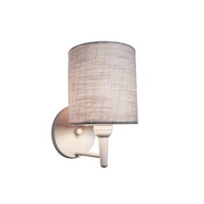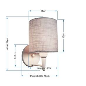 Arandela Cilíndrica Vivare Md-2009 Base Alumínio Branco Cúpula em Tecido - Bivolt - Cor: Branco-rustico-cinza | Voltagem: 127/220V