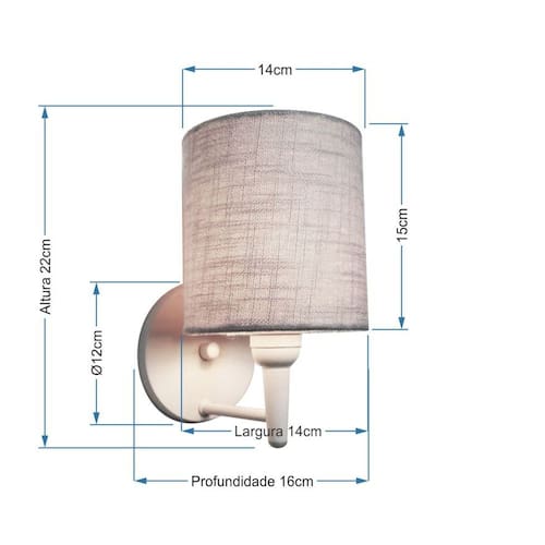 Arandela de parede Cilíndrica Vivare Md-2009 Base Branca Cúpula em TecidoAs arandelas Lustres Vivare são elementos versáteis e elegantes que podem transformar qualquer ambiente em um espaço cheio de estilo. Seja para adicionar uma iluminação suave, destacar uma parede ou criar um efeito de luz diferenciado.Dimensão:Cúpula em Tecido: 14x15cm