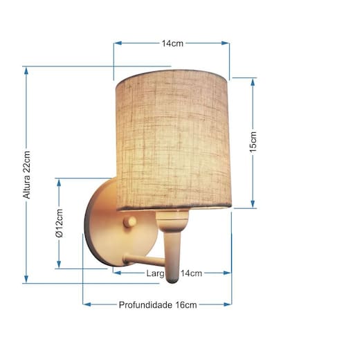 Arandela de parede Montada: Altura 22cm Largura 14cm Profundidade 16cm