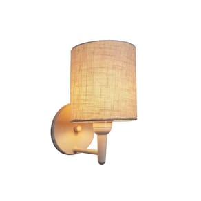 Arandela Cilíndrica Vivare Md-2009 Base Alumínio Branco Cúpula em Tecido - Bivolt - Cor: Branco-rustico-bege | Voltagem: 127/220V