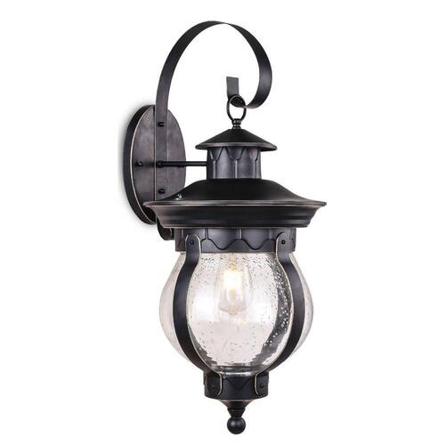 Cód: 13621-PLArandela Colonial Preto e DouradoSoquete: 1*E27 (Lâmpada não inclusa)Material: Metal e Vidro PontilhadoCor: Preto e DouradoDimensões: 40x18x20cm (AxLxC)