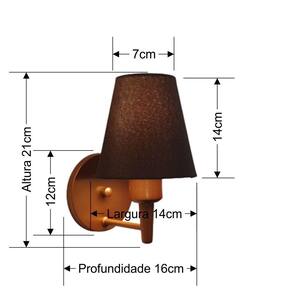Arandela Cone Md-2004 Base Cobre Cúpula Em Tecido 14/14x07cm Café - Bivolt Arandela de parede Cone Md-2004 Base Cobre Cúpula em Tecido 14/14x07cm Café - BivoltAs arandelas Lustres Vivare são elementos versáteis e elegantes que podem transformar qualquer ambiente em um espaço cheio de estilo. Seja para adicionar uma iluminação suave, destacar uma parede ou criar um efeito de luz diferenciado.Dimensão:Cúpula em Tecido: 14x07x14cm Arandela de parede Montada: Altura 21cm Largura 14cm Profundidade 16cm Formato: Cone Tamanho: Pequeno Especificação:Material: Cúpula em Tecido Estrutura em Alumínio Base Parede: Diâmetro 11x1,2cm Resistente: Á Maresia Voltagem: 110V/220V Liga e Desliga: Não Tipo de Soquete: E27 Lâmpada Utilizada: Led Bulbo Até 16w ou Fluorescente Espiral Até 25w Cada Capacidade de Lâmpadas: 1 Observação:Acompanha Lâmpada: Não Possui Led Integrado: Não Garantia: 12 Meses Manual de Instalação: Sim Arandela de parede Montada: Sim Controle de Luminosidade: Não Tipo de Embalagem: Caixa Conservação e Manutenção do Produto:A Limpeza deve ser realizada com o produto desligado. Remova o lustre que pode ser lavado com sabão neutro. Nunca utilize produtos químicos e abrasivos Dica:Antes de comprar o seu produto verifique as medidas, o local onde pretende instalar e se necessário o serviço de um profissional qualificado.