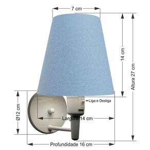 Arandela Cone Md-2013 Branco C/ Inter Liga e Desl Cúpula em Tecido Azul Bebê - Bivolt