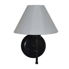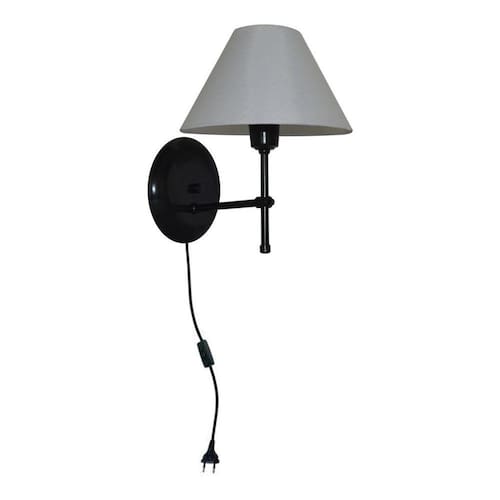 Arandela de Parede modelo em T Base na cor Preto e Cúpula na cor Branco. Feita de Alumínio e Cúpula de Algodão.