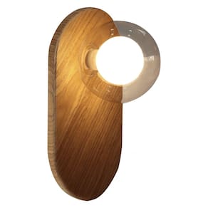 A Arandela de Parede Netuno, é produzida em lâmina de madeira natural na cor freijó, a cúpula é em vidro e o soquete G9, moderna e atemporal para deixar seu ambiente charmoso e sofisticado