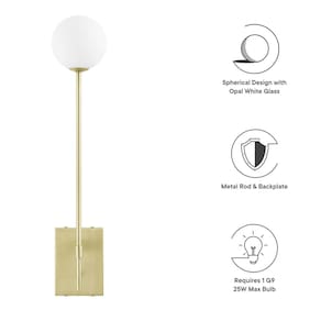 Arandela de parede Modway EEI-6533-SBR Riva White Globe, latão acetinado