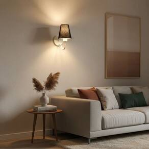 Arandela de Parede com Cúpula em Tecido Preta – Iluminação Sofisticada e Funcional