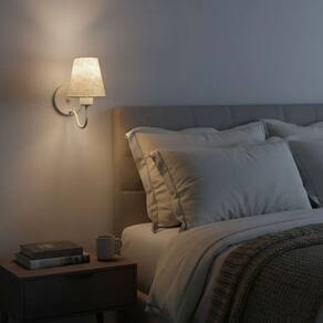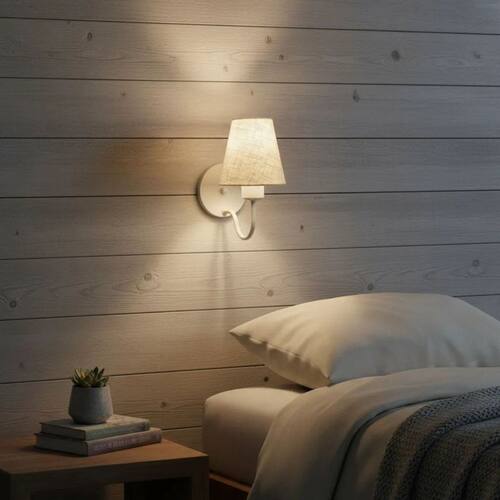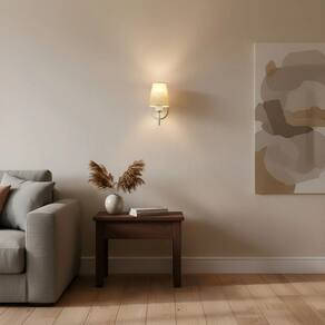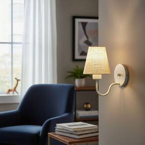 Arandela de Parede com Cúpula em Tecido Rustico Bege – Iluminação Sofisticada e Funcional