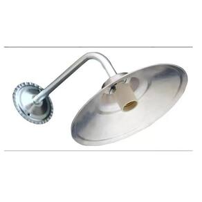 O kit contém: prato em alumínio polido, braço galvanizado de 5/8 de 30cm, soquete cerâmico e27 e canopla rosqueável galvanizada.
