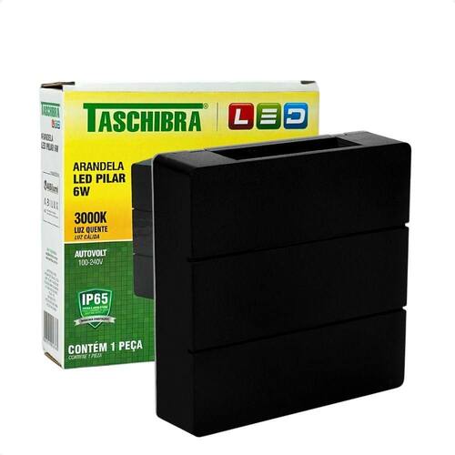 Arandela Led Taschibra Pilar Slim IP65 3000K Bivolt Preto