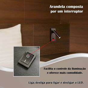 Arandela Leitura Cabeceira Led Interruptor Spot Preto Bet53
