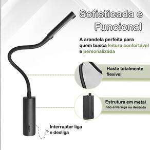 A arandela de leitura combina funcionalidade e elegância em um design compacto e versátil. Com lente difusa, ela oferece uma iluminação suave e homogênea, perfeita para leitura ou atividades que exigem concentração, sem causar ofuscamento. A haste flexível adiciona praticidade, permitindo o ajuste da direção da luz no ponto da sua preferência.