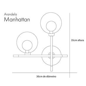 Feita para completar seu projeto de iluminação, a Arandela Manhattan agrega sofisticação e elegância ao seu ambiente. Seu corpo em aço é resistente e elegante, sua cúpula de vidro dupla é formada por um vidro leitoso que proporciona uma iluminação suave e elegante, envolto por uma segunda cúpula em vidro transparente, resultando em uma peça moderna e sofisticada. Disponíveis nas cores Preta com detalhes dourados e Dourada com detalhes preto.