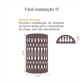 Arandela Luminária Decorativa Madeira Encantadas Red Cor: Nogueira A iluminação certa pode transformar um ambiente, deixando-o mais requintado, confortável e aconchegante. Nossas luminárias são criadas e desenvolvidas com a intenção fazer essa transformação, pois são construídas com material de primeira e com projetos muito bem elaborados, unindo beleza, funcionalidade e bom gosto.