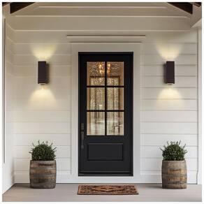As luzes externas com acabamento preto lixado são feitas de alumínio. As tampas para cima e para baixo são trabalhadas com o vidro temperado durável, garante uma boa transmissão de luz e cria um ambiente noturno aconchegante. O elegante design vertical é o complemento perfeito para a decoração da sua casa. À prova de ferrugem e durável A lâmpada de parede usa cilindros de alumínio e usa um processo de pulverização mais avançado do que a tinta spray. Tem um desempenho de dissipação de calor melhor e mais rápido, pode efetivamente prevenir a ferrugem, mais durável do que as luzes de parede comuns e tem uma vida útil mais longa. Totalmente à prova dágua A luz da varanda está em alto nível de padrão à prova dágua com excelente desempenho em condições úmidas, ideal para ambientes internos e externos. Como sala de estar, quarto, quarto infantil, restaurantes, cozinha, escadas, corredor, corredores, jardim, pátios, portas e pátio etc. Fácil de instalar A luz de parede externa moderna usa design com fio rígido, inclui todo o hardware de montagem para instalação rápida e fácil direcional UP, DOWN ou HORIZONTAL. Adequado para lâmpada de base E26, máximo 60W lâmpada não incluída. Tamanho da lâmpada de parede externa 4,7 x 3,9 x 1311 x 9 x . Tamanho da placa traseira 4,7 x 4,711 x Marca: Não Informado